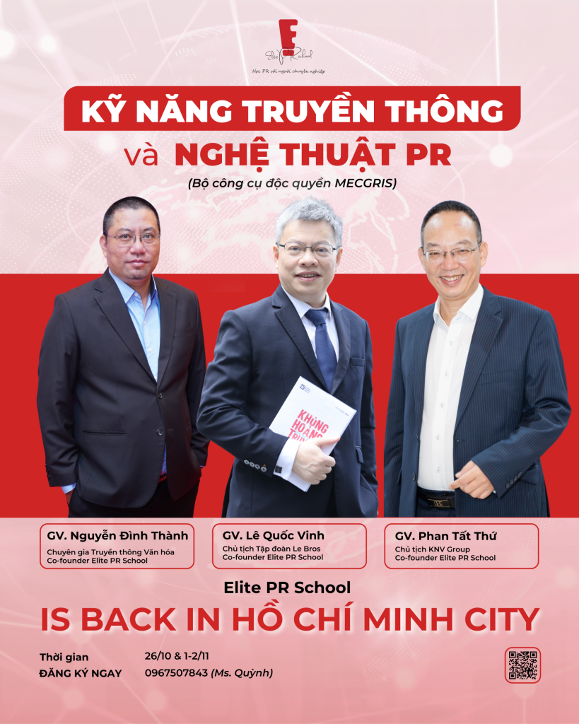 Elite PR School is back in HỒ CHÍ MINH CITY KHÓA HỌC: KỸ NĂNG TRUYỀN THÔNG & NGHỆ THUẬT PR – ME040 Hoàn thiện và hệ