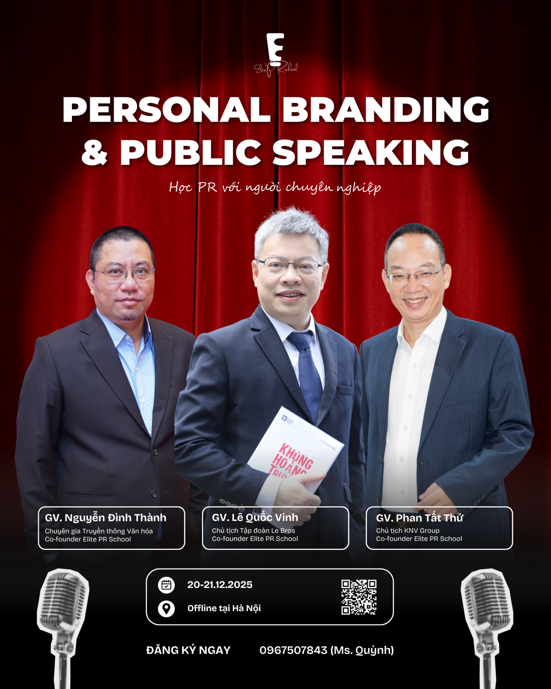 Giảng viên của Elite PR School dạn dày kinh nghiệm trong giới PR Việt Nam nhiều năm, giúp các cá nhân và tổ chức nâng cao năng lực PR – phương thức hữu hiệu nhất để tạo dựng hình ảnh, xây dựng thương hiệu, gia tăng giá trị và nâng cao năng lực.