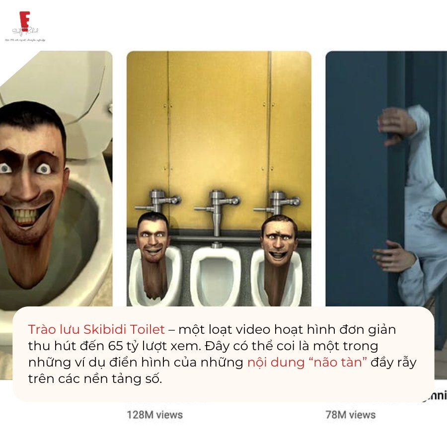 Một ví dụ điển hình là trào lưu Skibidi Toilet – một loạt video hoạt hình đơn giản nhưng thu hút đến 65 tỷ lượt xem. Những nội dung này không mang lại giá trị cụ thể nào ngoài việc thỏa mãn sự tò mò hoặc giúp người xem giết thời gian. Điều đáng lo ngại là chúng đang dần định hình hệ ngôn ngữ và tư duy của giới trẻ, biến những cụm từ vô nghĩa thành ngôn ngữ giao tiếp hàng ngày.